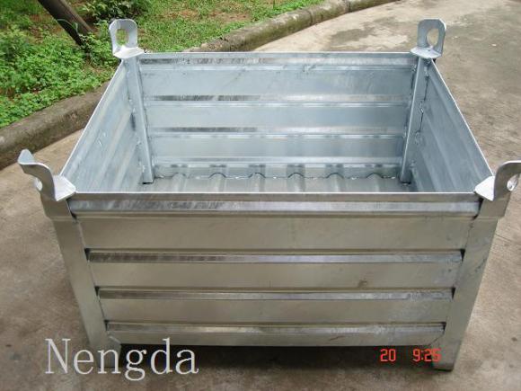 鋼制料箱多用于散件或散狀物料的集裝;有固定式、可拆式或折疊式三種結(jié)構(gòu)和板式、格式、網(wǎng)式三種形式;一般下部可進(jìn)叉,上部可吊裝,并可進(jìn)行多層堆垛(一般為3-5層)。